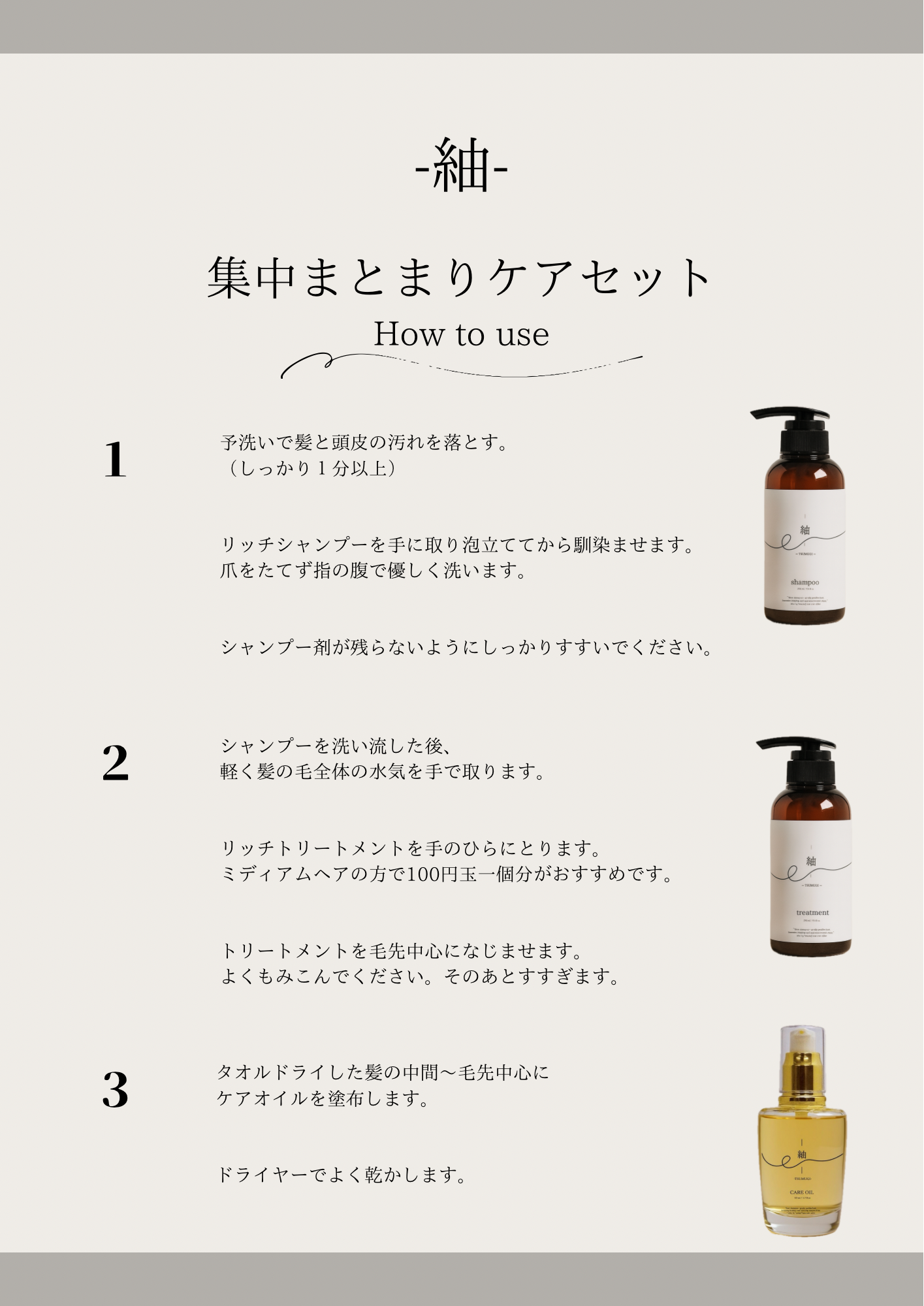 しっとりツヤのあるまとまり髪に整えます。